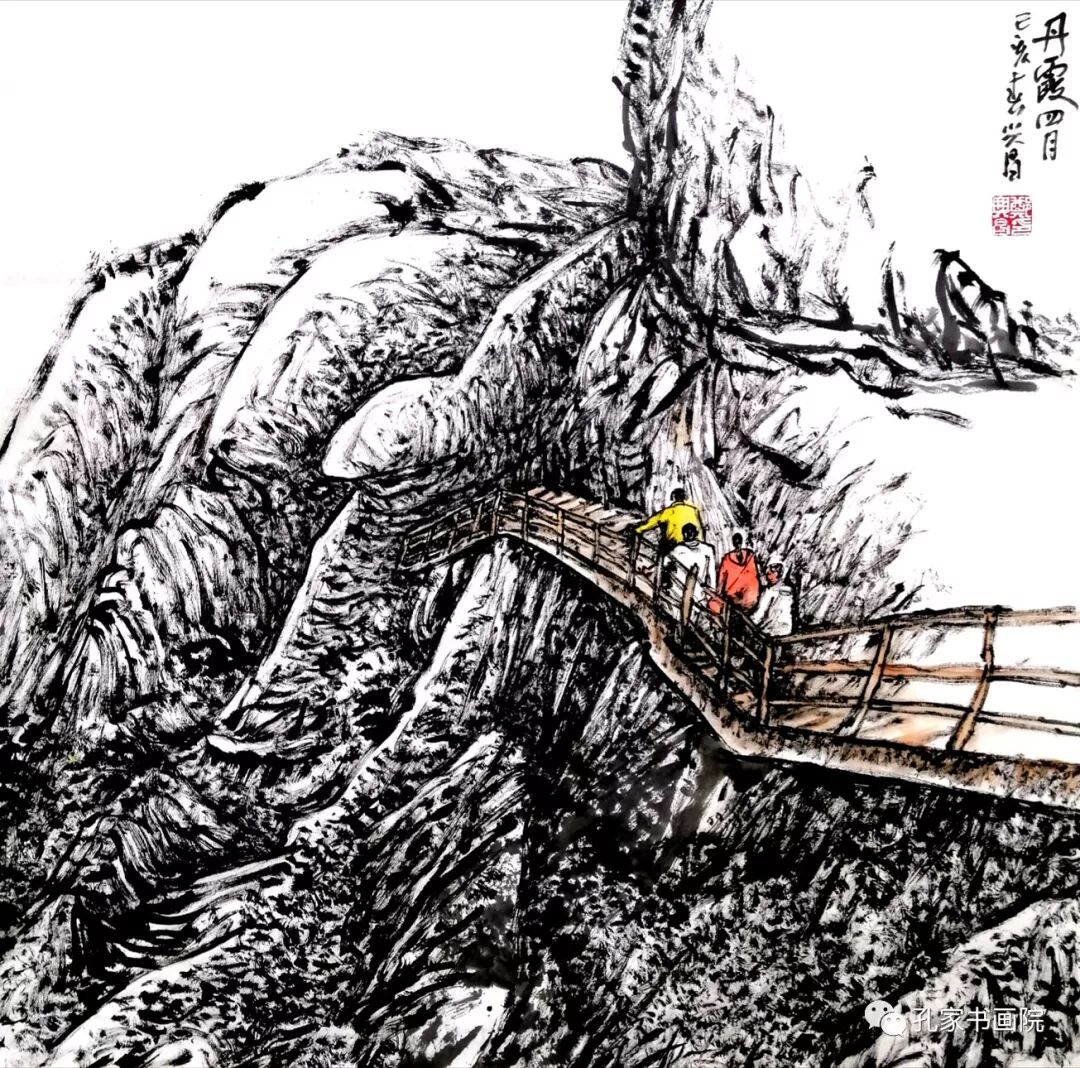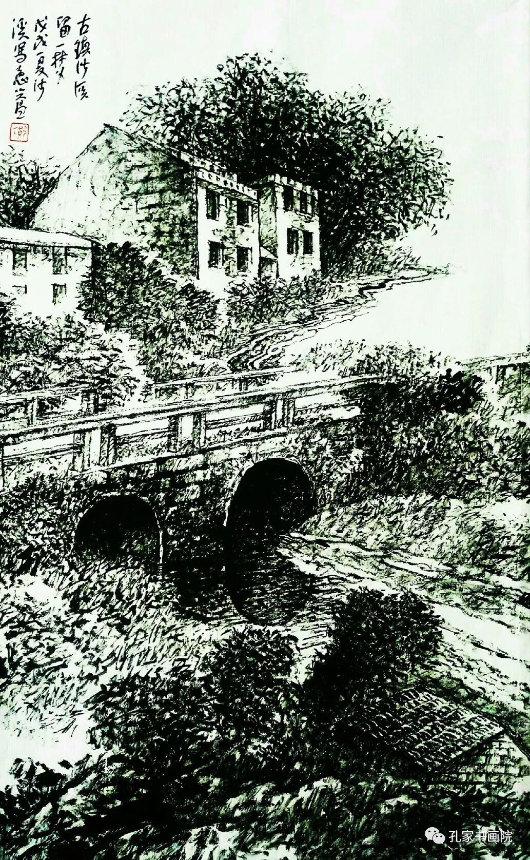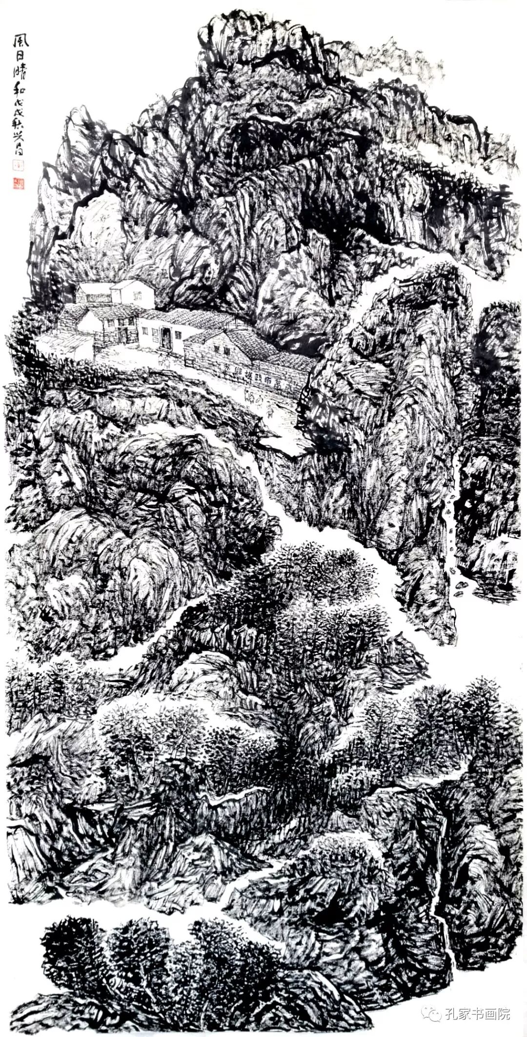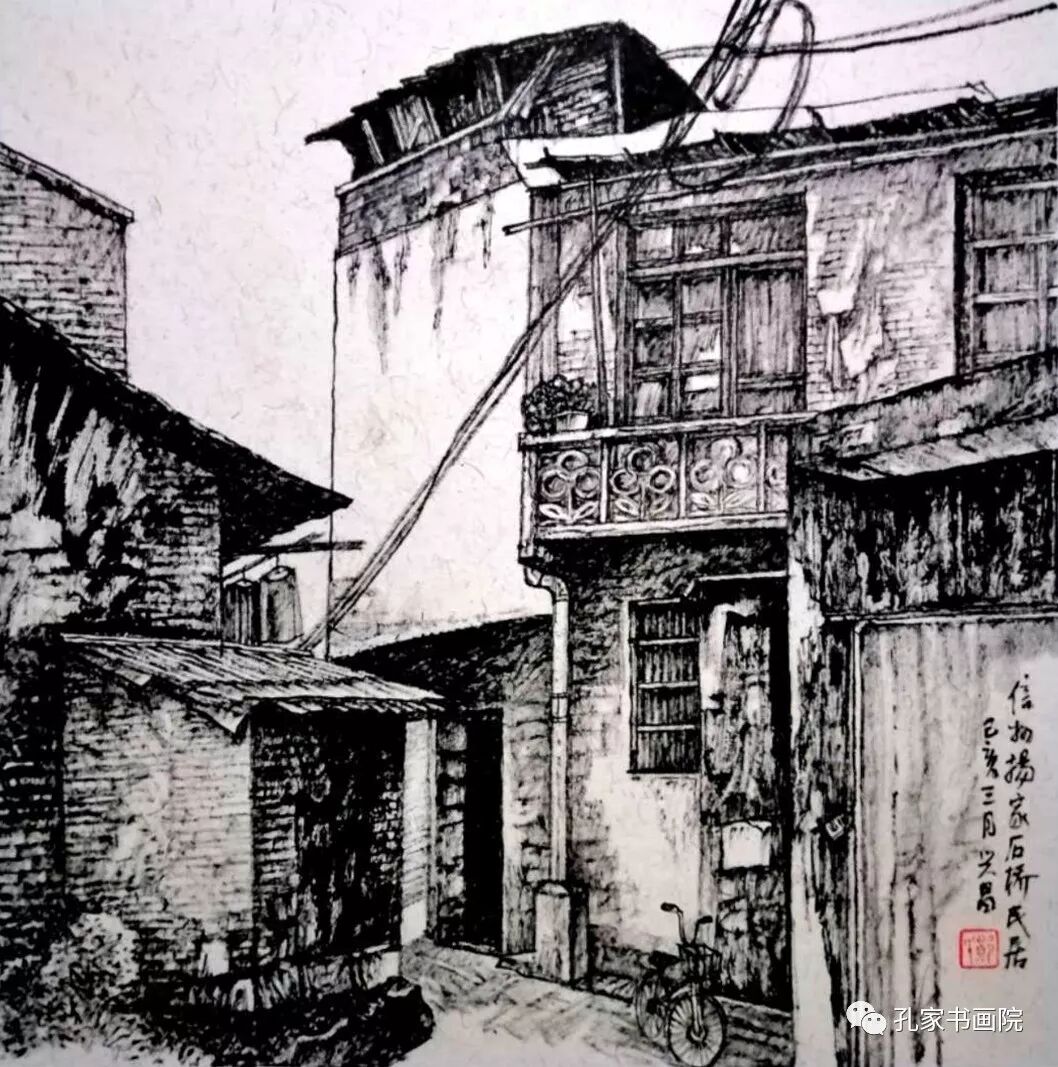 今观郑兴昌焦墨作品及古民居系列颇多感受,其用笔大胆,点线准确。繁简适中,五色相生实属不易。同时也从中反应出斯人在绘画中的天份与修养。中国画是修出来的!中国画是悟出来的!中国画是沧桑人生的内外共呜,非一时性起三天半的毛手毛脚可达。