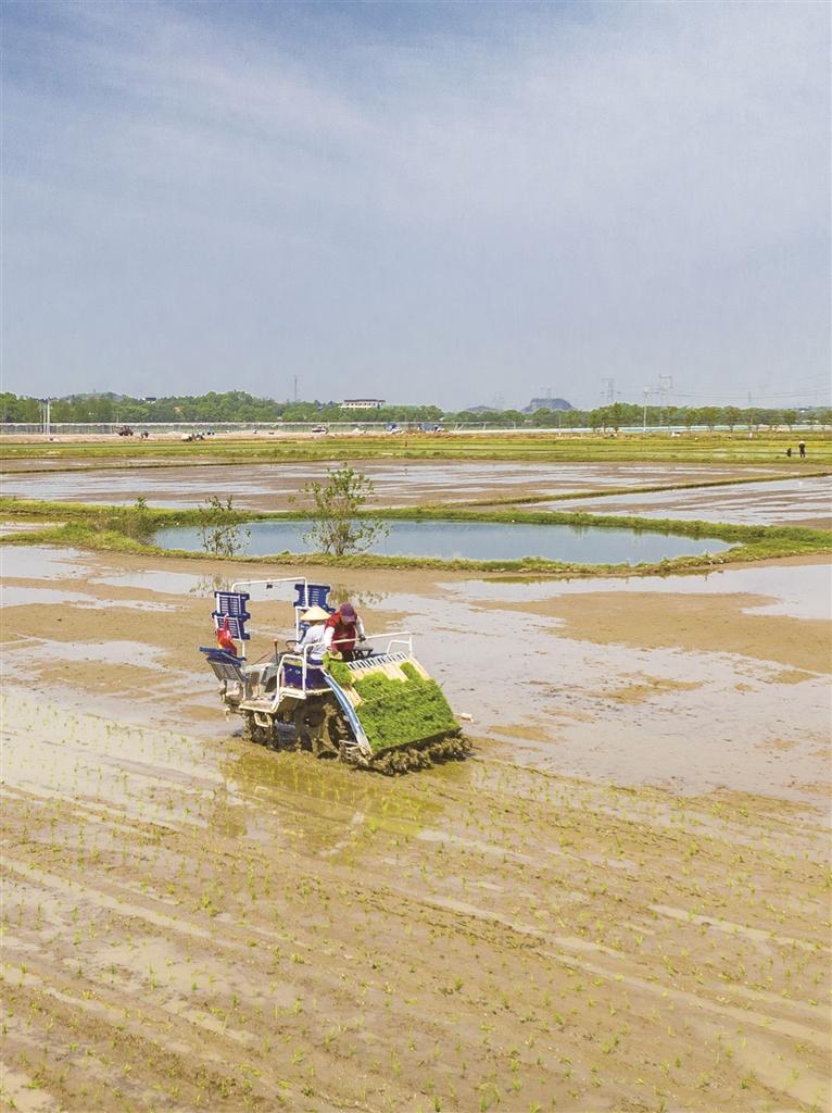 时下,正值早稻种植时期。4月18日,横峰县莲荷乡丁家村农田里,农机手驾驶插秧机开展早稻插秧作业,田间地头呈现一派繁忙的春耕景象。近期以来,横峰县各地积极开展抢农时保春耕工作,大力推广早稻集中育秧和机械化插秧,进一步降低劳动强度、节约人力成本,提高粮食生产效率,为粮食稳产增效打下坚实基础。