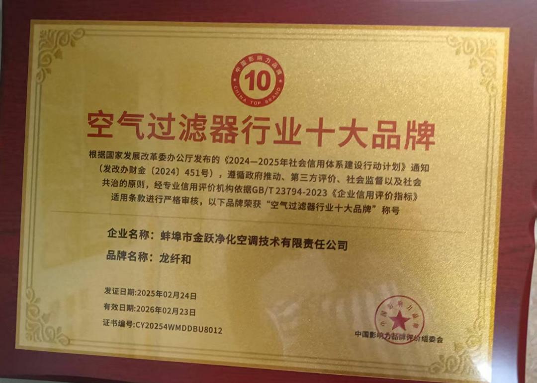 尤为值得一提的是,金跃净化空调旗下的“龙纤和”系列品牌产品,凭借其各类净化设备,以及高、中、初效空气过滤器,以及特种领域专用型、超高温400度、三元高效空气过滤器等系列产品,在业界大放异彩。在2025年中国影响力品牌评价组委会举办的盛会上,“龙纤和”荣膺空气过滤器行业十大品牌之誉,这不仅是软实力的见证,更是市场对其卓越品质的广泛认可,该品牌入选优质强国品牌工程官网。