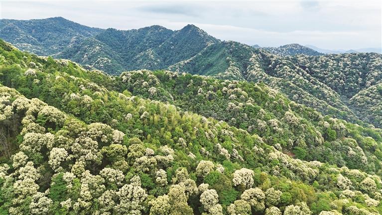 近期,在德兴市新岗山镇体泉林场,漫山遍野的栲树花迎风怒放。远远望去,高大的树冠上缀满嫩黄的花朵,一团团、一簇簇,层层叠叠,仿若给林海披上金色的盛装。汪杰 摄