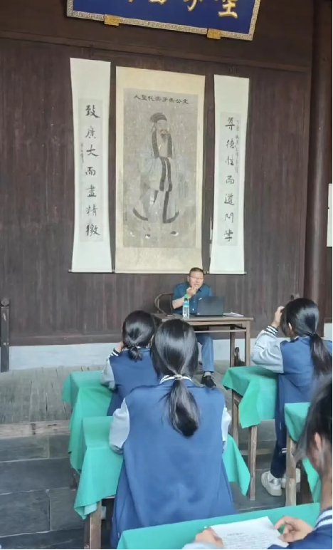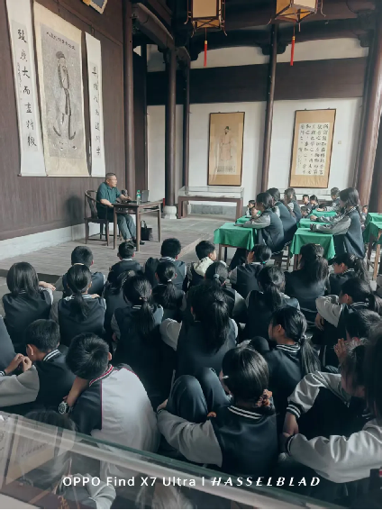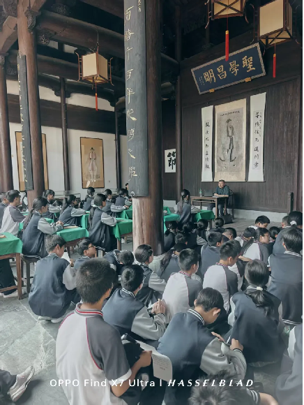 此次研学活动亮点纷呈。婺源朱子学会会长带领全体同学齐声朗诵《朱子家训》,经典家训的智慧与力量直抵人心,随后还为同学们带来了一场生动的朱子文化讲座,他娓娓道来朱熹的生平经历,从朱熹父亲朱松、名字由来,到年少求学、初入仕途,再到寒泉著作、重建书院等故事,无不引人入胜。此外,会长对 “程朱理学” 理念、发展脉络,以及 “理高于势” 政治理念的深入讲解,更让同学们深刻认识到朱子文化对古代政治、社会的深远影响。
