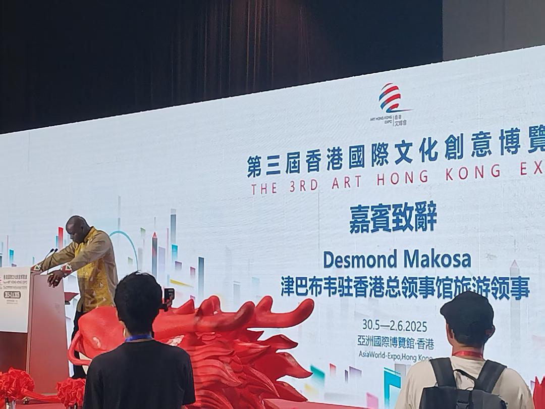津巴布韦总领事在第三届香港艺术博览会开幕式致辞中表示:“继成功参与第二届香港艺术博览会后,津巴布韦很荣幸能够再次亮相第三届盛会。我们积极参与此次展会,充分体现了津巴布韦共和国领事馆与香港艺术博览会主办方之间深厚的友好关系,而这一关系的基础,正是双方对彼此文化及文化遗产的高度重视。津巴布韦作为一个多语言国家,多种本土语言蓬勃发展,在日常交流中发挥着关键作用,彰显出丰富的语言多样性。津巴布韦人口约1700万,拥有16种公认的官方语言,这无疑充分证明了该国多元文化的本质和种族多样性。津巴布韦的艺术和文化产业充满活力,通过手工艺品出口及文化相关贸易,为国家财政贡献了数百万美元的收入。”