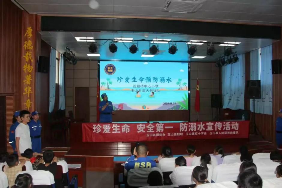 为增强学生防溺水安全意识,筑牢生命安全防线,6月5日下午,玉山县蓝天救援队走进四股桥中心小学,开展“珍爱生命,预防溺水”主题安全宣讲活动。
