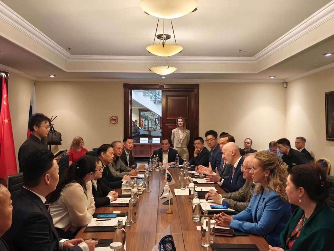清远侨商经贸考察团还拜访了中国企业家总商会会长翁瑞龙,探讨共建中俄茶文化交流平台的可行性,并探讨结合俄罗斯消费者偏好浓香型红茶、便捷茶包的特点,开发定制化产品,通过线上线下融合推广茶文化。