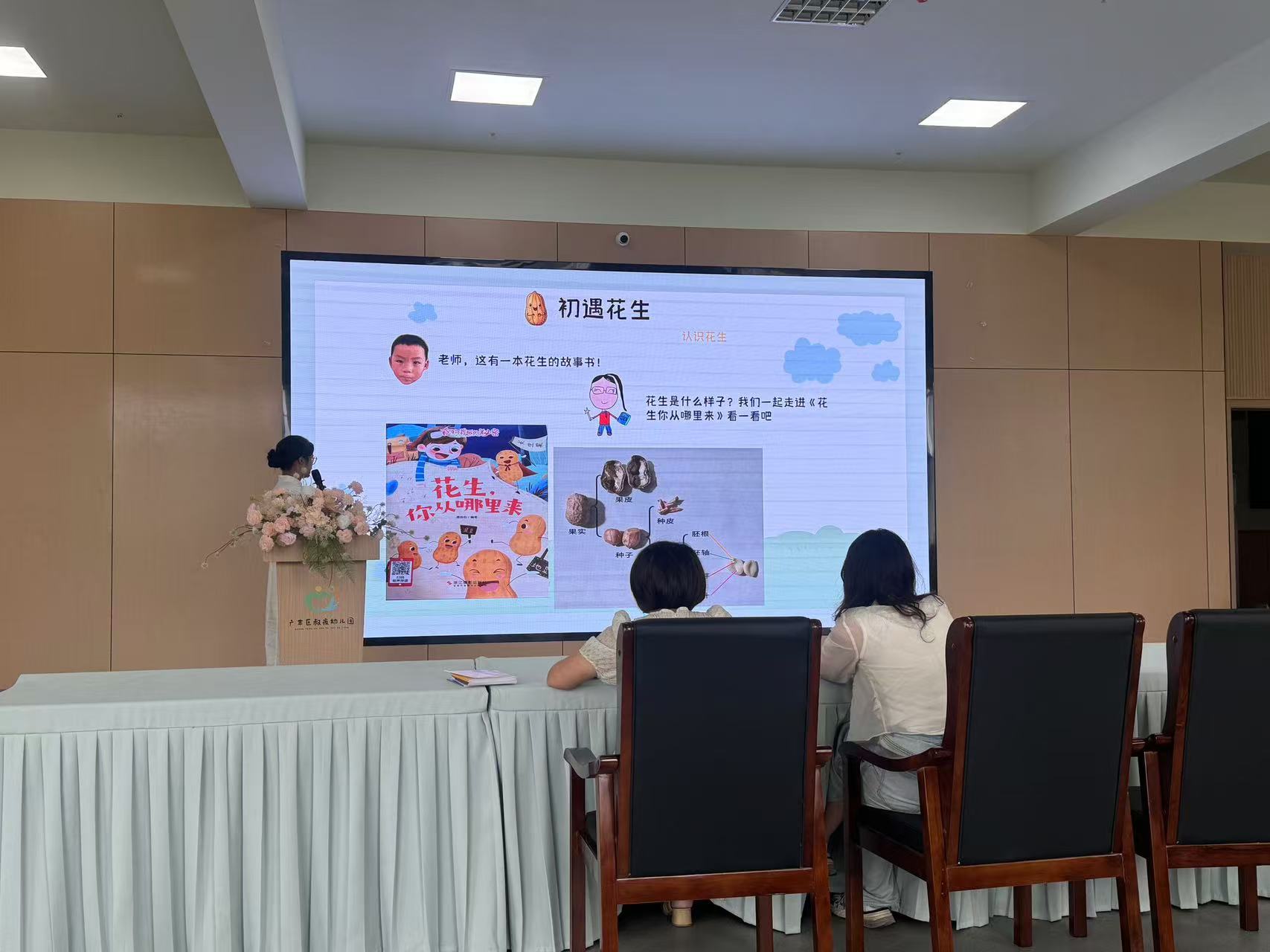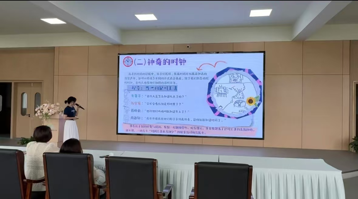 分享环节中,各班老师们结合PPT展示、视频播放等形式,从课程来源、目标设定、实施过程、成果展示和反思总结等多个维度,详细阐述《好事“花生”》《与时间的对话》《喝水这件事》等课程故事。教师们的分享各具特色、亮点纷呈,充分展现了他们对班本课程的深入理解和积极探索,也体现了以儿童为中心的教育理念。