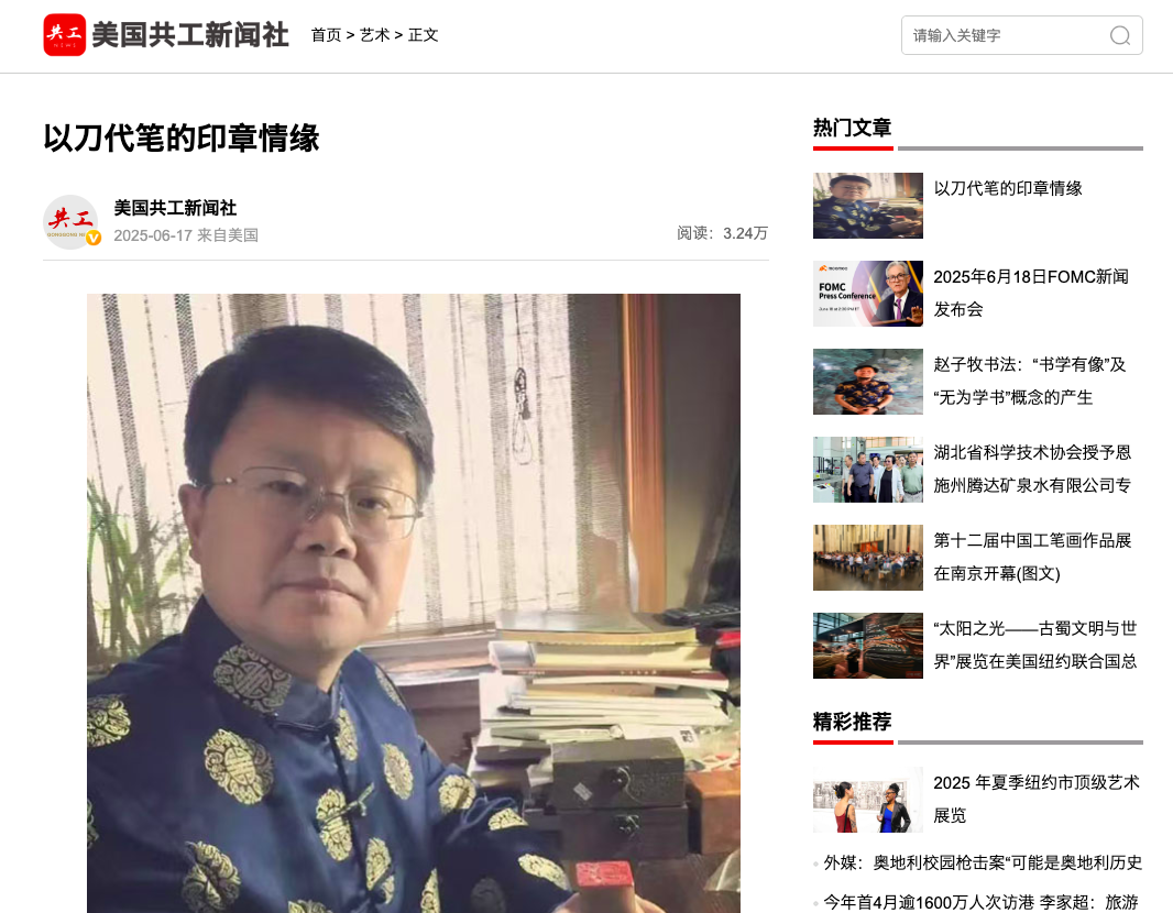 近日,应美国共工新闻社社长龚玉华之邀,著名齐派篆刻家刘慧远先生精心操刀,为该社篆刻了一枚独具艺术魅力的社章。