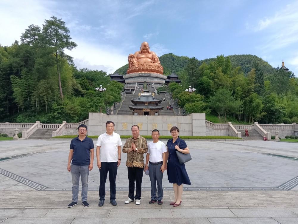 图说:在奉化市雪窦寺弥勒佛道场广场留影。印尼共工社发