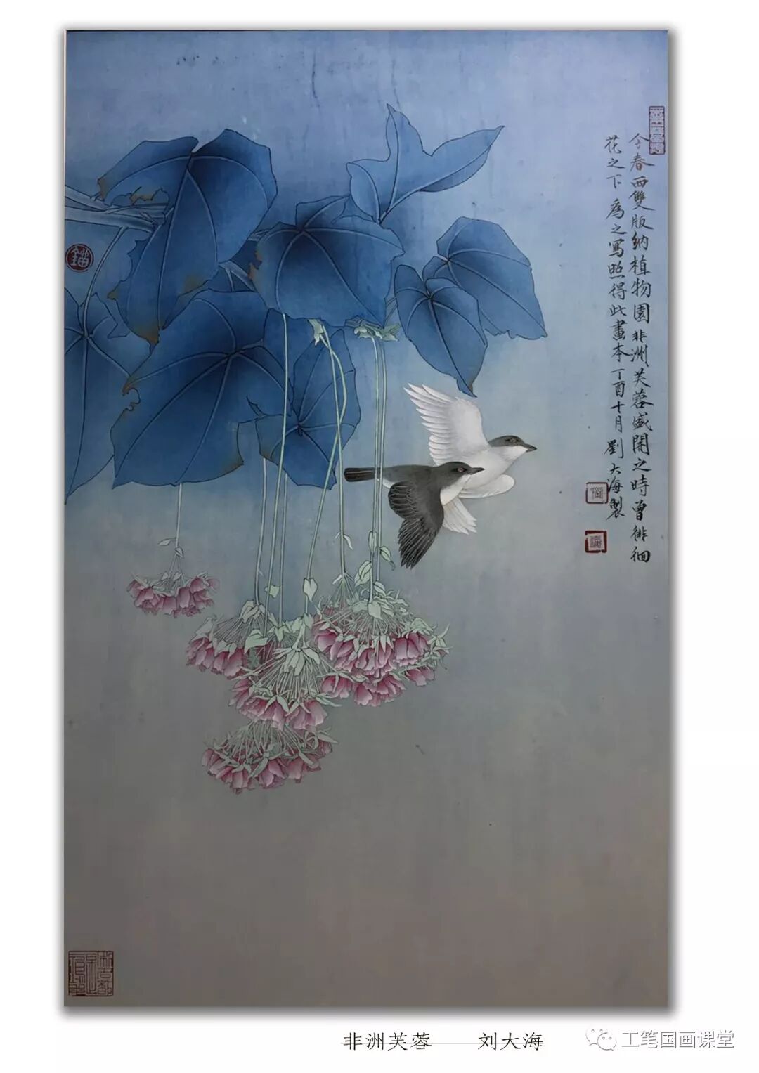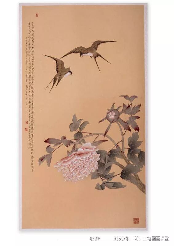 一次裱画的机会,大海结识了天津工艺学院的一位老师,拜师系统学工笔花鸟画。