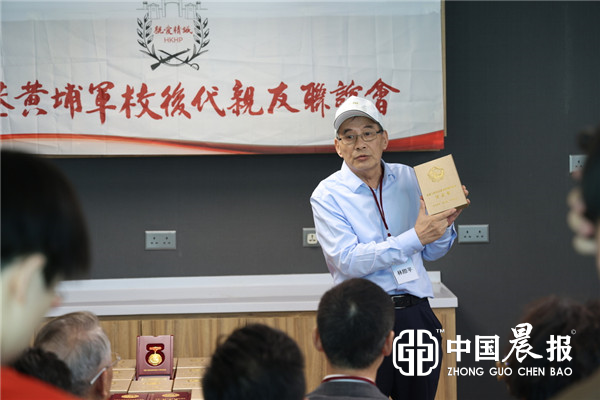 香港黄埔军校后代亲友联谊会会长林际平介绍纪念勋章颁发情况。(本刊记者 孙艺寧 摄)