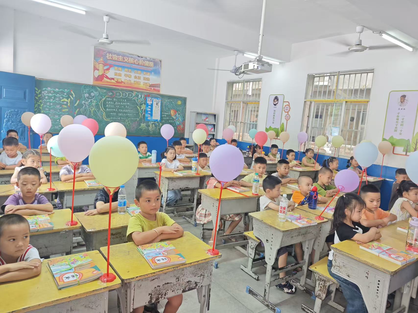 为让新生们感受到校园的温暖与欢迎,8月31日起,该校教师便全身心投入到入学仪式的筹备工作中。大家分工协作,吹气球、绑彩带、绘制主题板报,原本空旷的教室在老师们的巧手下焕然一新,充满了童真与童趣。“这些布置虽简单,却藏着我们对孩子们的期待,希望他们踏入校园时能感受到惊喜与温暖。” 一位教师说道。