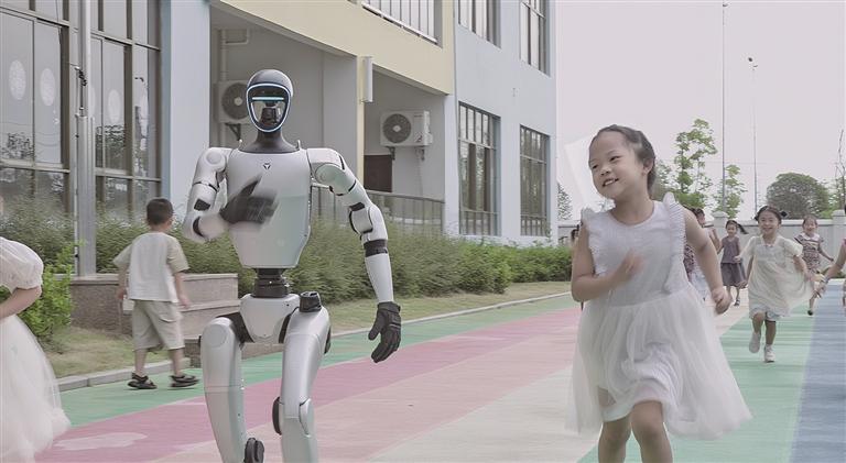 9月5日,在余干县第七幼儿园,小朋友正在和机器人互动。近年来,余干县持续深化科普教育创新,将智能设备深度融入沉浸式实践课堂,以生动有趣的方式激发青少年对人工智能的探索热情。
