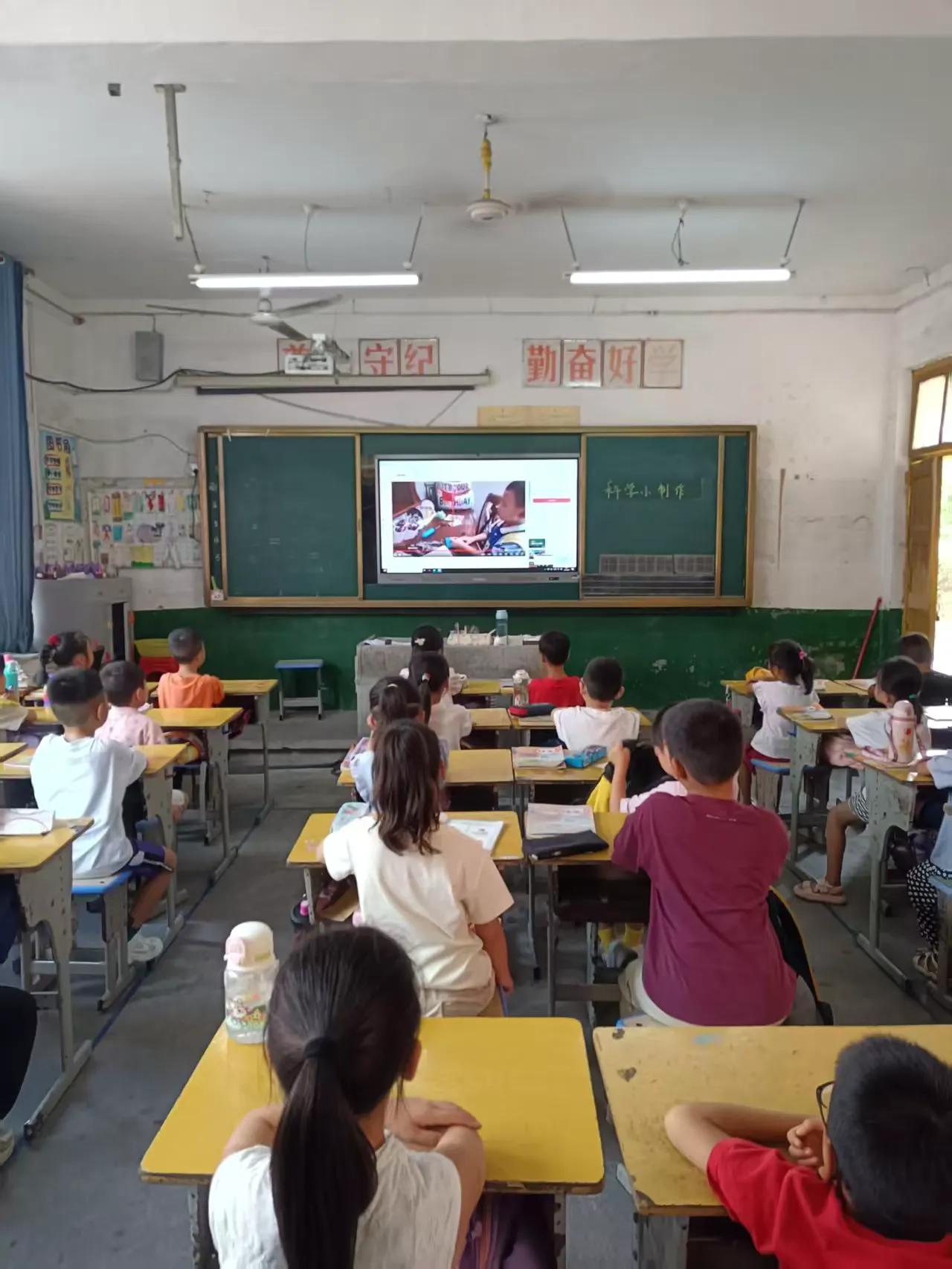 在观看完科普视频后,学生们积极分享自己在生活中的科学小发现。有的同学分享了为什么吸管能吸起饮料,有的同学讲解了彩虹形成的原理,还有的同学展示了自己制作的简单科学小实验。