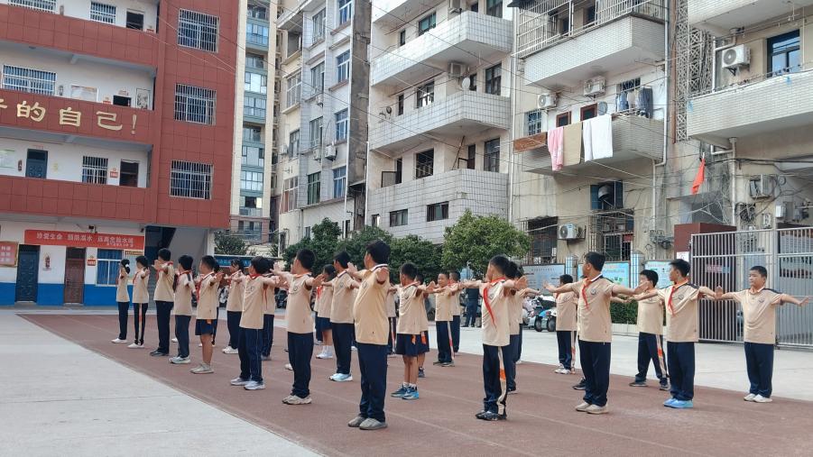 随着活动音乐响起,余干县第三小学操场上瞬间化作活力海洋。跑操环节,学子们步伐整齐、口号嘹亮,展现出昂扬的精神风貌;广播体操时间,同学们昂首挺胸、动作标准,手臂伸展如青松挺拔,踢腿跳跃似雏鹰振翅;三字经操与弟子规操环节,传统文化与体育律动巧妙融合,孩子们在舒展的动作中感悟经典魅力;最后的放松操则让身心在舒缓节奏中得到调节。整场活动动静结合、张弛有度,整齐划一的队列宛如流动的青春画卷,充分彰显出该校学子良好的身体素质与严明的纪律意识。