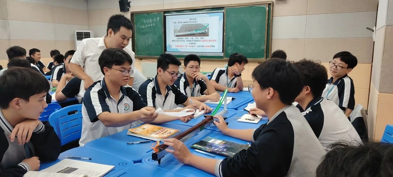 聚焦科学思维,探究相互作用本质。姜智平老师执教课题为《牛顿第三定律》,他以“核导弹”为切入点,通过传感器测力、磁铁间相互作用等系列互动实验,引导学生主动探究“作用力与反作用力”的关系,同时借助改装空气动力小车、设计“导蛋”实验,帮助学生运用牛顿第三定律解决实际问题,有效培养了学生的科学思维与探究精神。