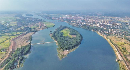 秋日的余干县梅港乡小洲岛一派迷人景象。碧波衬托着蓝天,宛若明镜的水面横卧在山川之间,周围层林尽染,构成了一幅美妙的秋日山水画。韩海建 摄