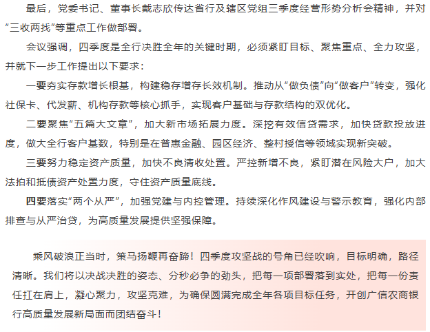 广信农商银行召开党委理论学习(扩大)会暨三季度经营分析会