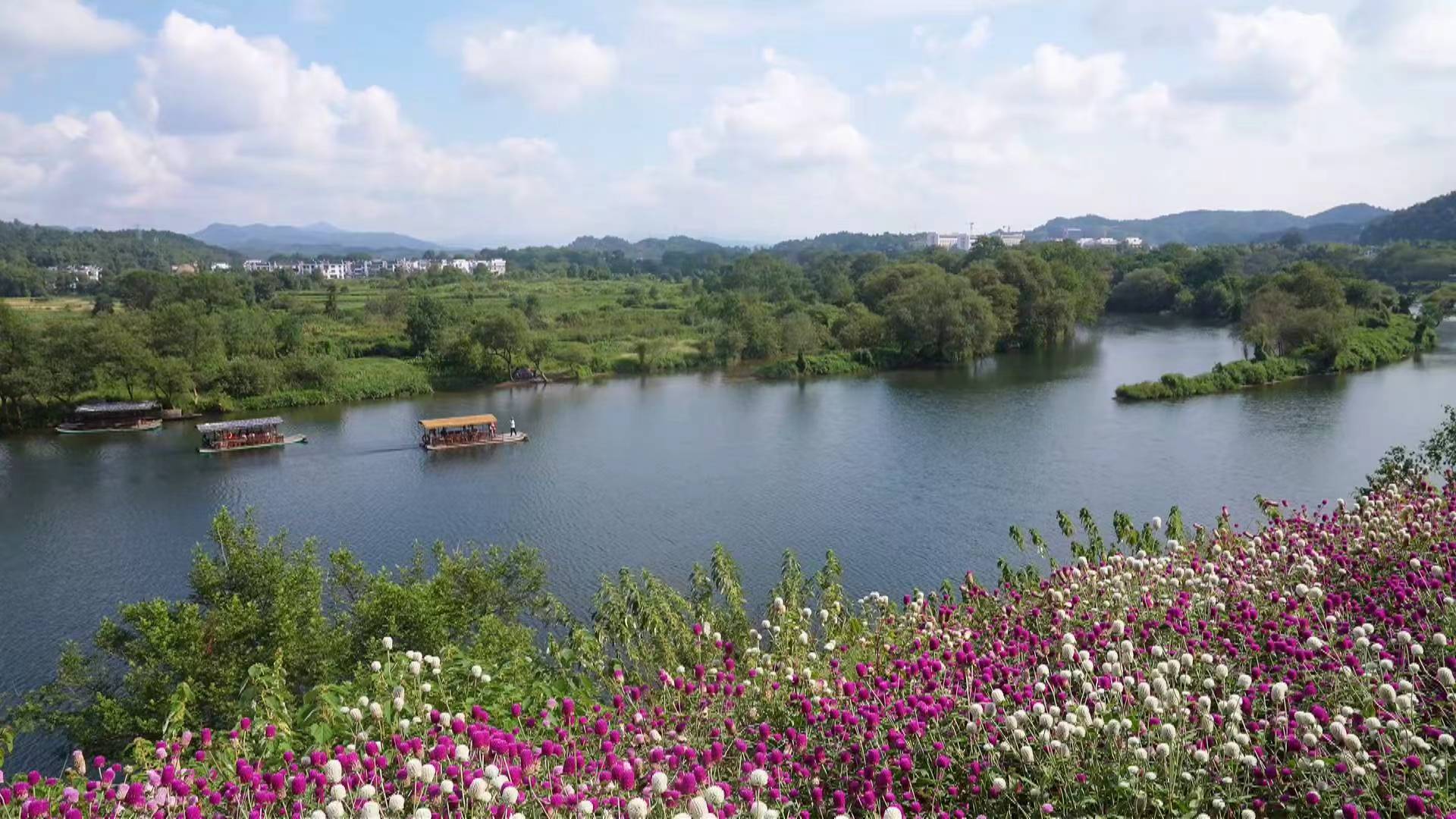 冬日里的婺源,远山含黛,碧水凝波。电影《闪闪的红星》中潘冬子撑筏而过的山水,如今愈发明媚动人。当年的取景地——察关古村、漳村画卷、月亮湾,已从银幕走向现实,成为无数人向往的诗意田园。而坐竹排、赏江景,成为众多游客在月亮湾旅游公园的首选。