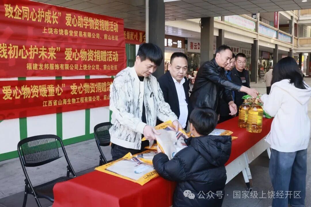 11月23日,前山社区携手江西省山海生物工程有限公司、上饶市饶春堂贸易有限公司、福建龙邦服饰有限公司上饶分公司,共同开展爱心物资捐赠活动,为辖区困难学生送上校服、大米、食用油等慰问品,传递社会各界关怀暖意。