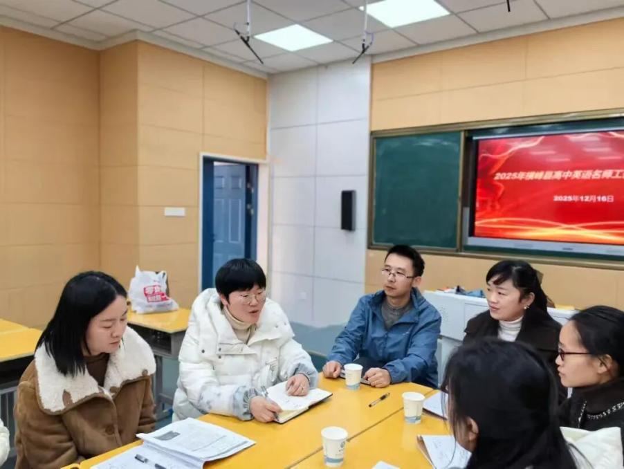 听课教师专注记录教学亮点,课后研讨环节氛围热烈。工作室成员各抒己见,肯定了示范课精准的节奏把控与思维引导设计,建议丰富送教形式,开展高三专项讲座等活动扩大惠及面。县英语教研员指出,课例充分展现了工作室教研落地成果,彰显了团队打磨的用心。
