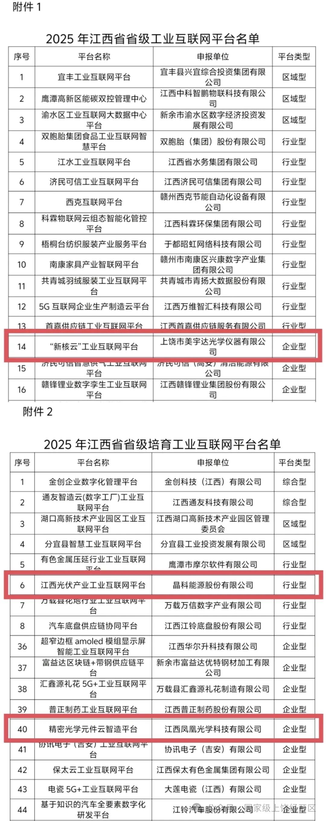 近日,省工信厅发布2025年江西省省级工业互联网平台名单及培育名单,我区3个平台成功入选,标志着我区推进工业互联网与实体经济深度融合工作取得扎实成效。