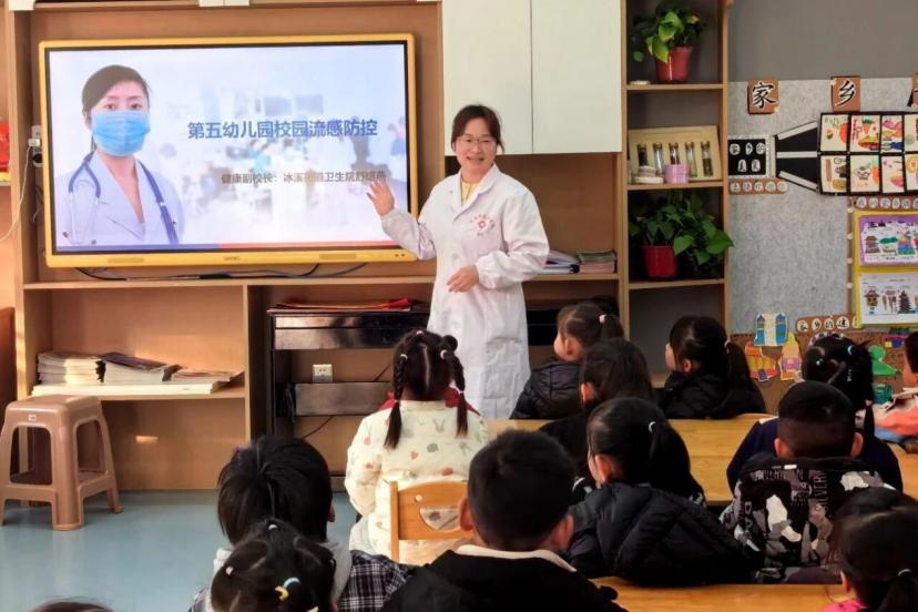 校园作为人员密集场所,是流感防控重点区域。玉山县全面推行“健康副校长”进校园机制,从县内多家医疗机构选派业务精湛的医务人员任职,精准对接校园防控需求。“健康副校长”结合青少年认知特点,以通俗语言和生动案例开展科普宣讲,让师生轻松掌握防控要点;同时定期入校指导晨午检、校园消杀等日常防控工作,在流感高发时段主动加班加点提供应急指导,用专业守护校园安全。