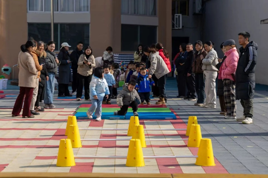 活动现场,家长们全程观摩幼儿户外体能锻炼、生活自理实践、课堂教学互动等日常教学环节。户外场地中,趣味体能游戏搭配规范早操展示,尽显幼儿的蓬勃活力与良好集体素养;教室内,生活技能养成练习、多元能力展示及亲子互动游戏有序开展,直观呈现出该院以游戏为载体的教育理念,以及在幼儿健康、语言、社会、科学、艺术五大领域发展上的扎实成效,让家长们深入理解幼儿“在体验中学习、在互动中成长”的学前教育过程。