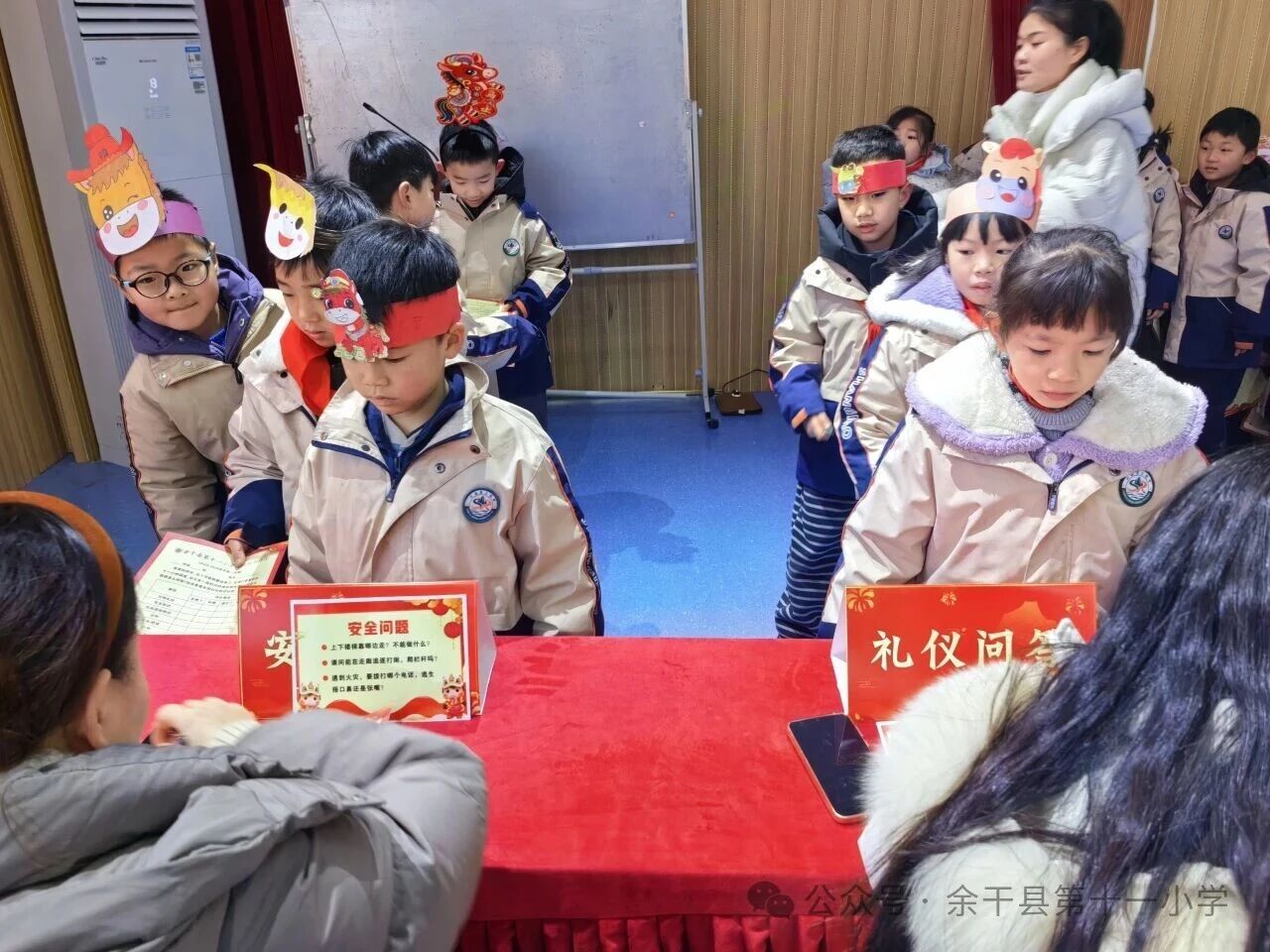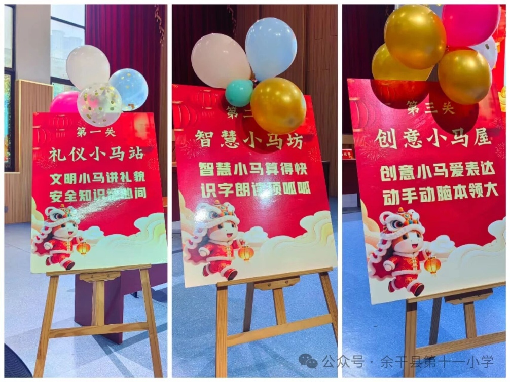 学校报告厅变身沉浸式“能力挑战场”,精心设计三大主题关卡:“礼仪小马站”聚焦行为习惯与文明素养;“智慧小马坊”涵盖语文拼音识字、数学口算应用、口语表达等基础能力;“创意小马屋”则融合美术表征、手工制作与节日文化理解,彰显五育融合理念。孩子们手持定制“闯关卡”,在有序排队与协作互动中自信表达、灵活应答,欢笑声里尽显成长张力。