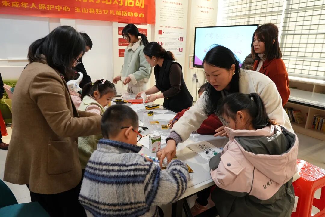 “哇,这个机器人会跟着手移动!”“妈妈你看,我拓印的图案好不好看?”“谢谢你的礼物,我太喜欢了!”近日,玉山县博物馆内笑语盈盈、暖意融融,由县妇联、县民政局联合主办的“寒冬送温暖,守护困境儿童过幸福年”爱心妈妈结对关爱活动在这里温馨启幕。十余名经过专业家庭教育技能培训的爱心妈妈及亲子家庭,与困境儿童现场结对牵手,在科普探索与手工互动中,共同编织冬日里的温暖记忆。