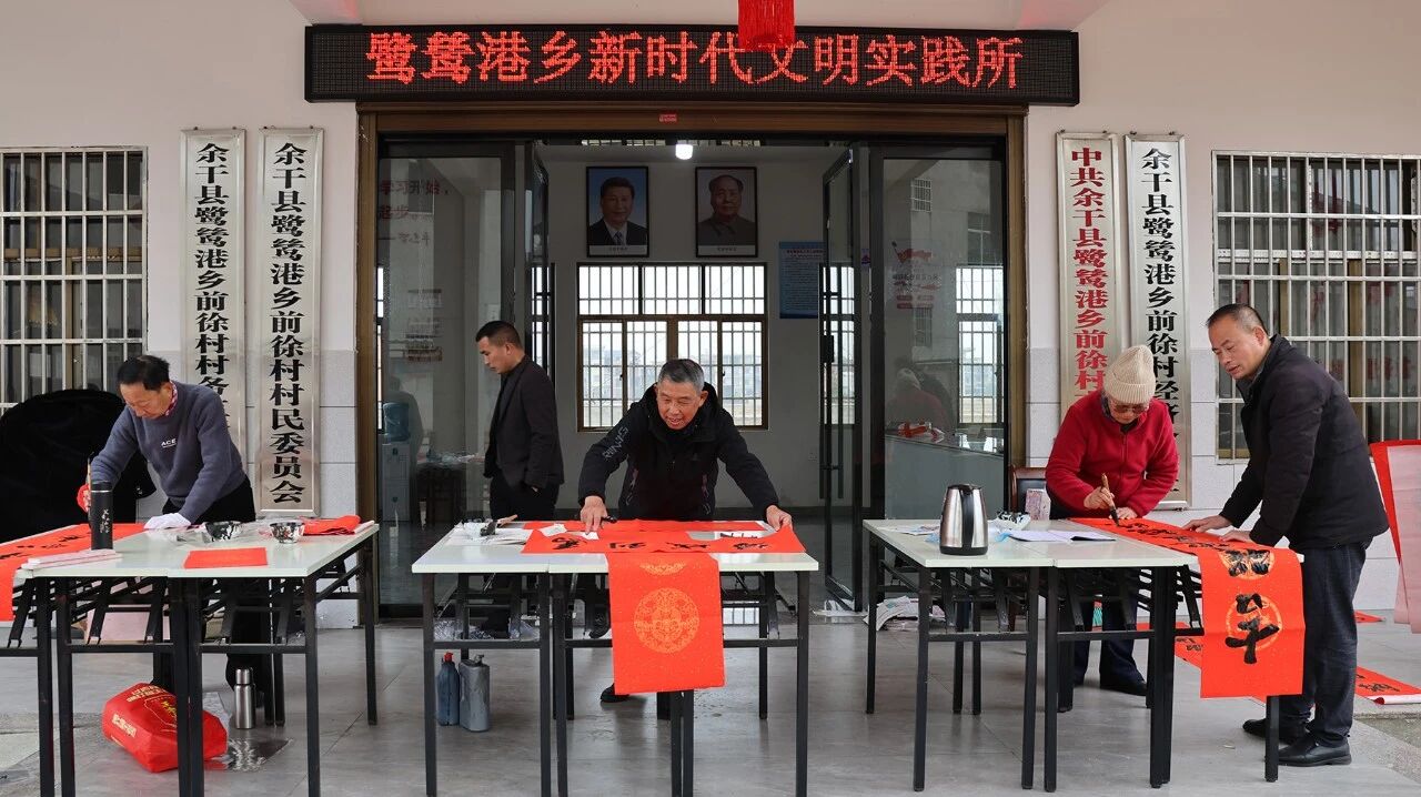 近日,余干县鹭鸶港乡前徐村新时代文明实践站联合余干县书法家协会开展以“墨香迎马年・春联送万家”为主题的文明实践活动。