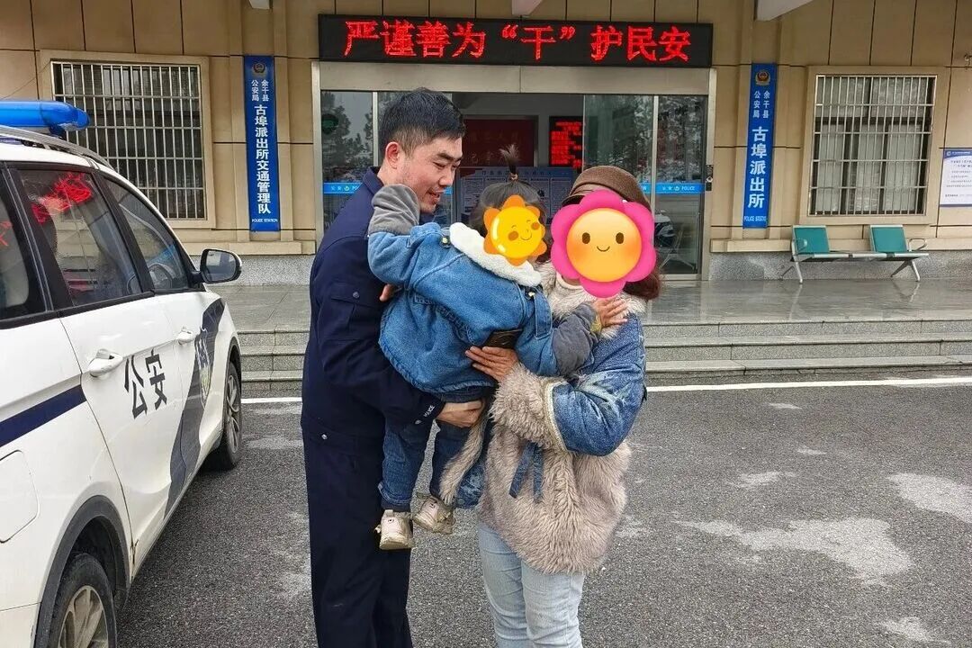 2月1日上午,古埠派出所接到群众报警,称在古埠村附近有一名幼童独自哭泣,疑似走失。民警立即赶赴现场,一边温柔安抚孩子情绪,一边同步在周边展开走访排查。通过细致工作,民警在半小时内便成功找到了孩子母亲。见到孩子平安无恙,母亲激动不已,紧紧握住民警的手连连致谢。