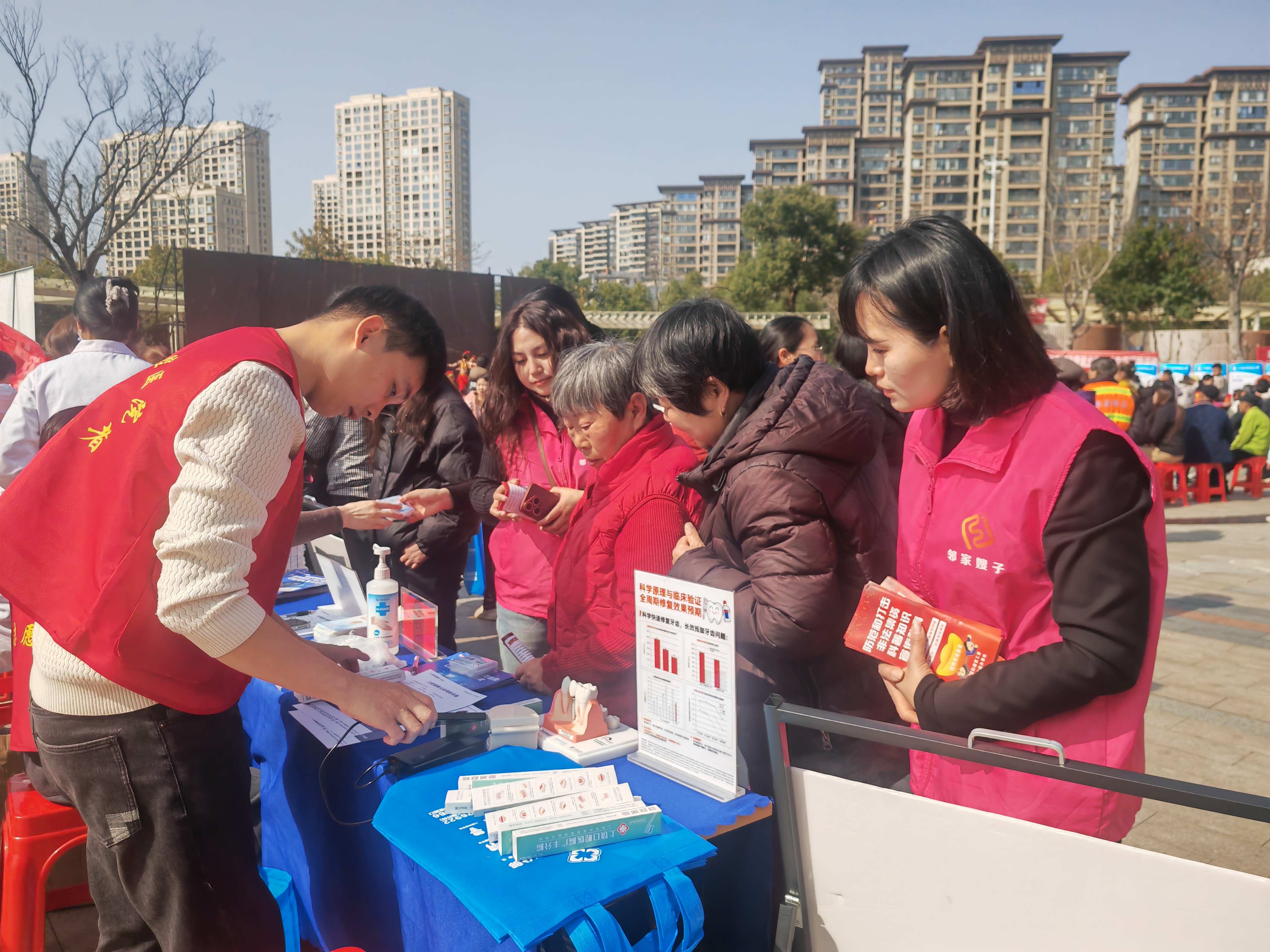 活动现场另一侧,新春便民服务大集同样人头攒动。公益志愿者在健康咨询摊位为居民免费检查视力、提供口腔义诊;宣传摊位前,志愿者一边讲解防诈骗知识,一边为居民送上福字、春联等新春礼包。邻家嫂子们也没闲着,有的帮着分发礼品,有的招呼邻居有序排队,还有的现场当起“讲解员”,用亲身经历提醒大家捂紧“钱袋子”。