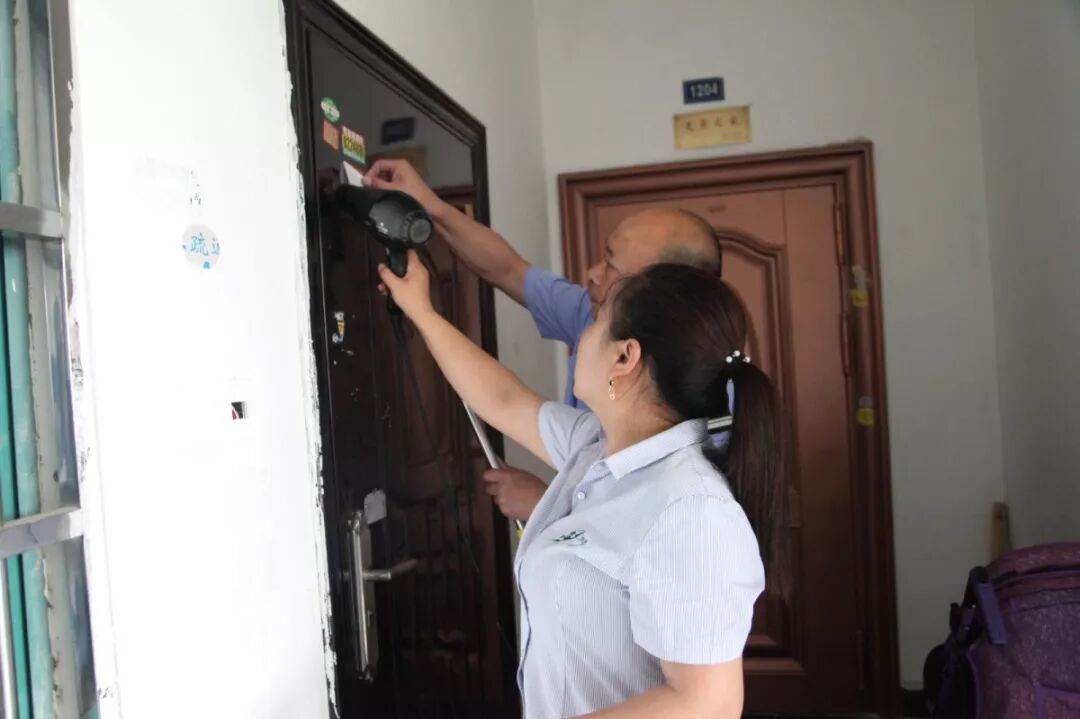 服务队采取分组作业的方式,每组两人包干三至四个楼道。大家不顾天气闷热,逐层清理,抹洗扶手、清除杂物、铲除小广告。在高层建筑里,光拎着水桶上上下下就会让人累的喘气,还要到一楼清洗抹布,置换用水。但队员们毫无怨言,挥汗如雨,坚持作业。通过近三个小时的连续工作,对八幢21个单元的楼道扶手、入户门面进行了全面擦抹,对五花八门的小广告进行了初步清除。队员们纷纷表态,只要创卫需要,我们始终听从召唤,远泉党群服务队永远是争“创国卫”的坚强排头兵、先锋队!