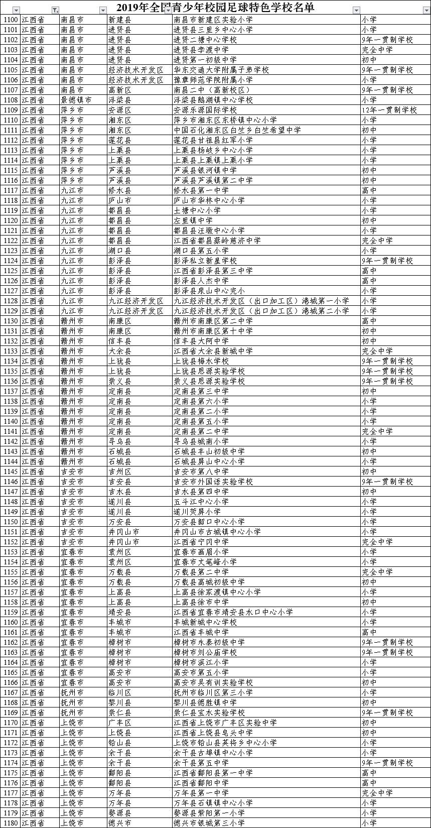 《2019年全国青少年校园足球特色学校、